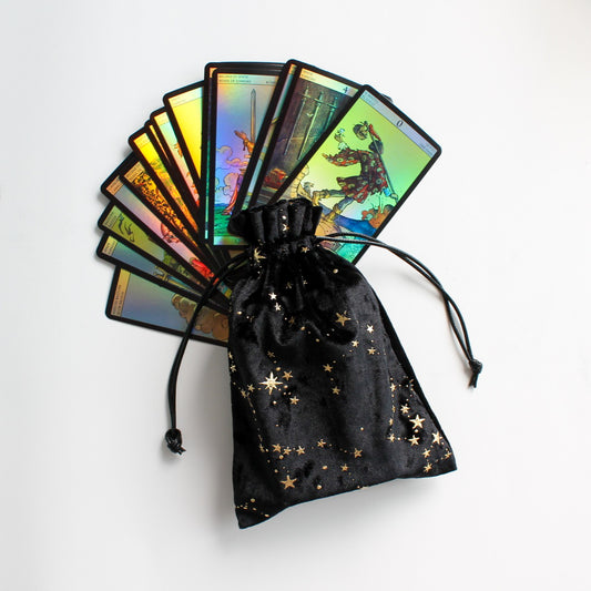 Woreczek na runy lub karty Złote Gwiazdy Czarny